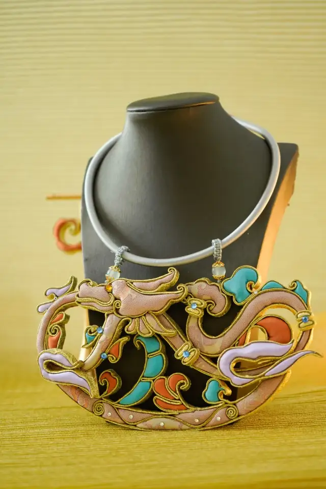 非遗盘扣作为龙泉禧里的核心始终坚持传承与发扬,并不断突破传统表现形式,以单独创新的形式在当代展现时代光彩。在服装造型搭配中,盘扣配饰充满魅力,或以耳饰、项圈等形式在摇曳漫步中绽放迷人魅力。
