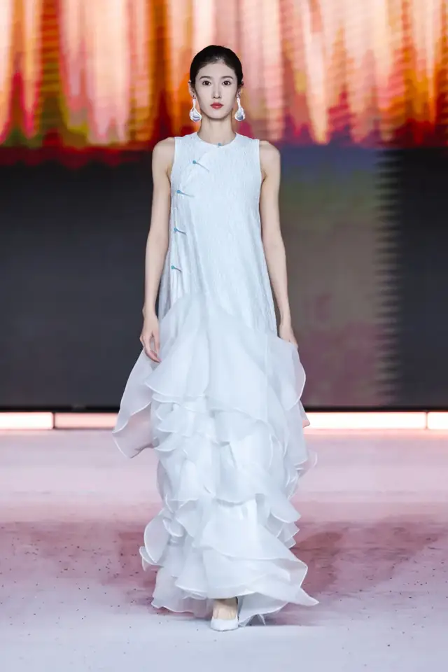本次发布秀设计理念围绕「东方意境下的时尚美学」展开 — 以自然之美、和谐之韵巧妙地织入现代时尚的经纬之中;以工艺为魂、苏工精作完美演绎传统手工艺在时尚领域的无声之美。