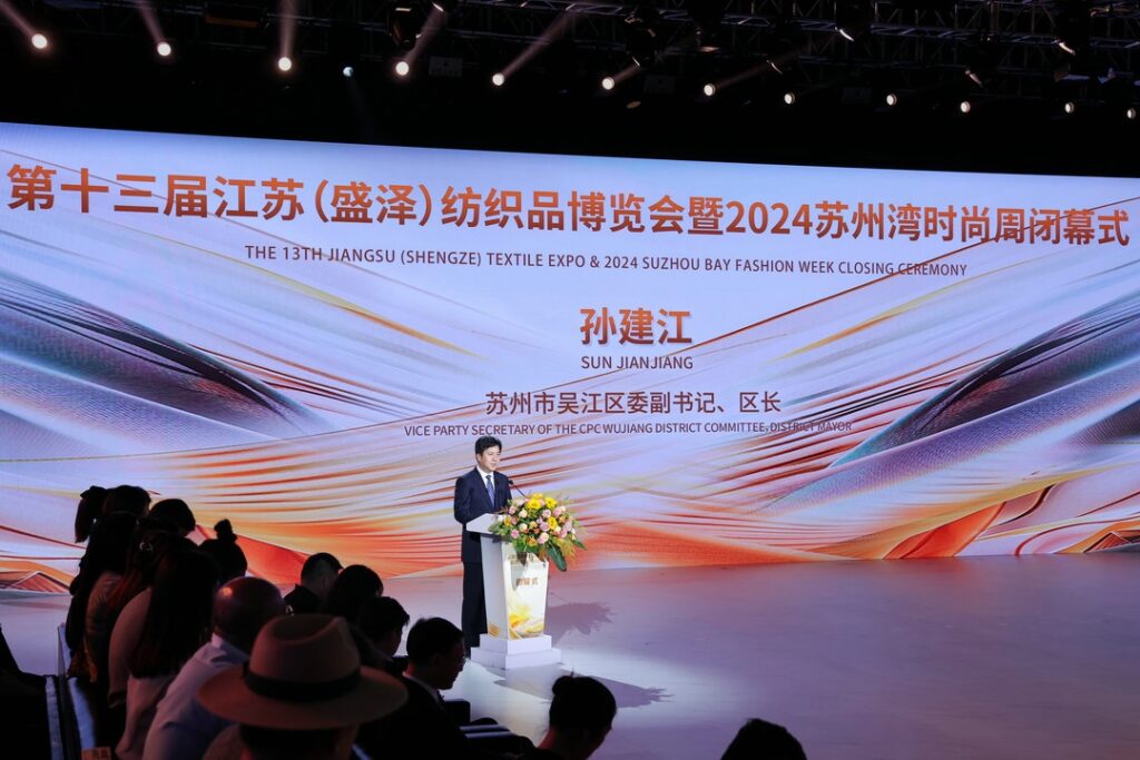 孙建江在致辞中说,第十三届江苏(盛泽)纺织品博览会暨2024苏州湾时尚周打造了一个展现纺织产业与潮流风尚的璀璨舞台,更是一次汇聚行业精英智慧、共绘未来发展蓝图的深度探索。吴江纺织行业创新发展的脚步不会停歇,接洽下单、创新开发、深化合作的余热仍将继续发挥。希望在各方资源的聚集碰撞下,产业链上下游联系更加紧密,纺织集群协作更加深入,线上线下联动更加畅通,平台的凝聚力、企业的生命力、行业的影响力、产业的创新力持续提升。
