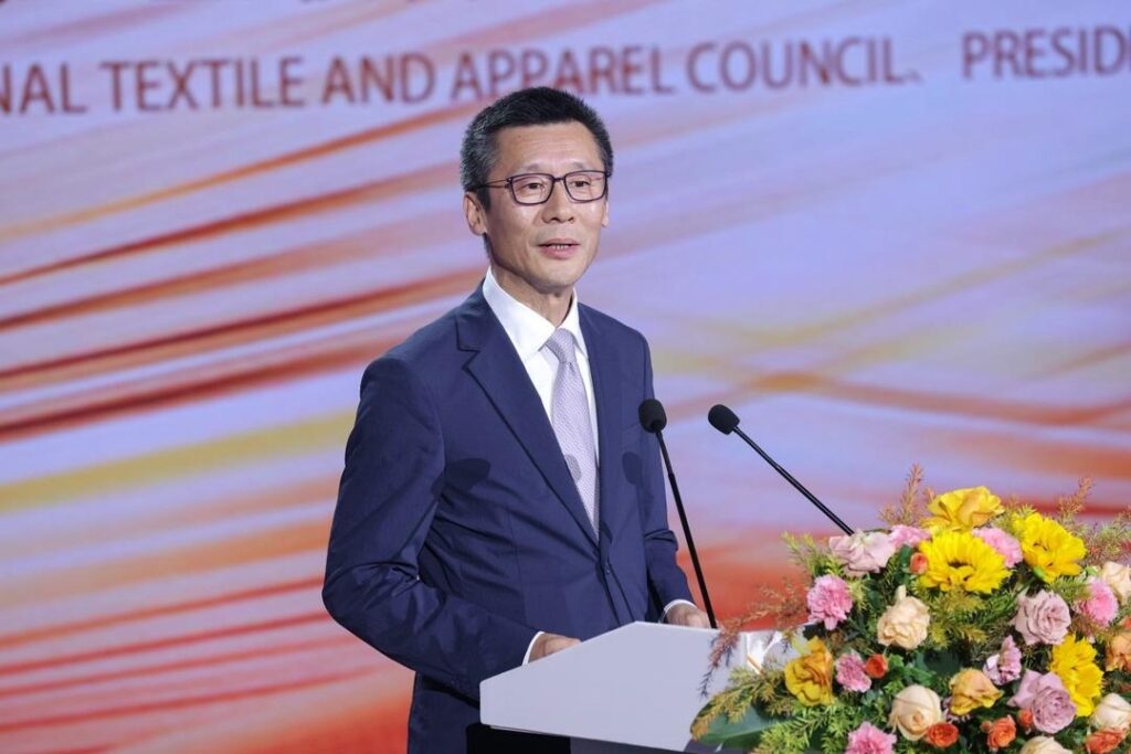 陈大鹏在致辞中表示,站在新中国成立75周年的新起点上,中国纺织产业正加速拥抱创新驱动、文化引领、绿色导向的行业新定位,全力织就强国复兴的新时代风景线。接下来,中国纺织工业联合会将与盛泽携手立足发展新质生产力的重要阵地,高质量、国际化、多维度地引领纺织产业向价值链更高端攀升,以时尚之笔加快书写现代化产业体系建设的大文章,让“丝”路越走越活,越走越广。希望各方赢得主动、赢得先机,进一步拓展产业向纵深发展,加快构建互联共生的产业新生态,实现产业在数字经济时代新的高质量发展。