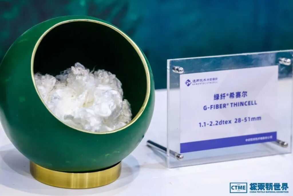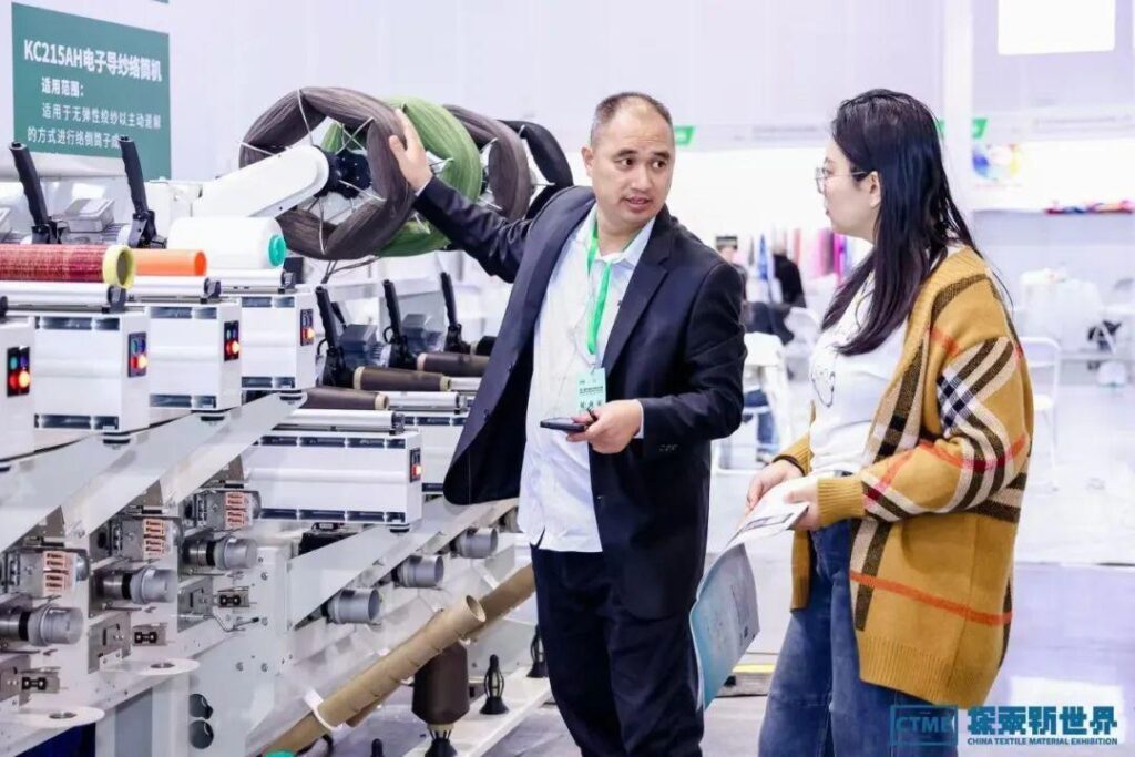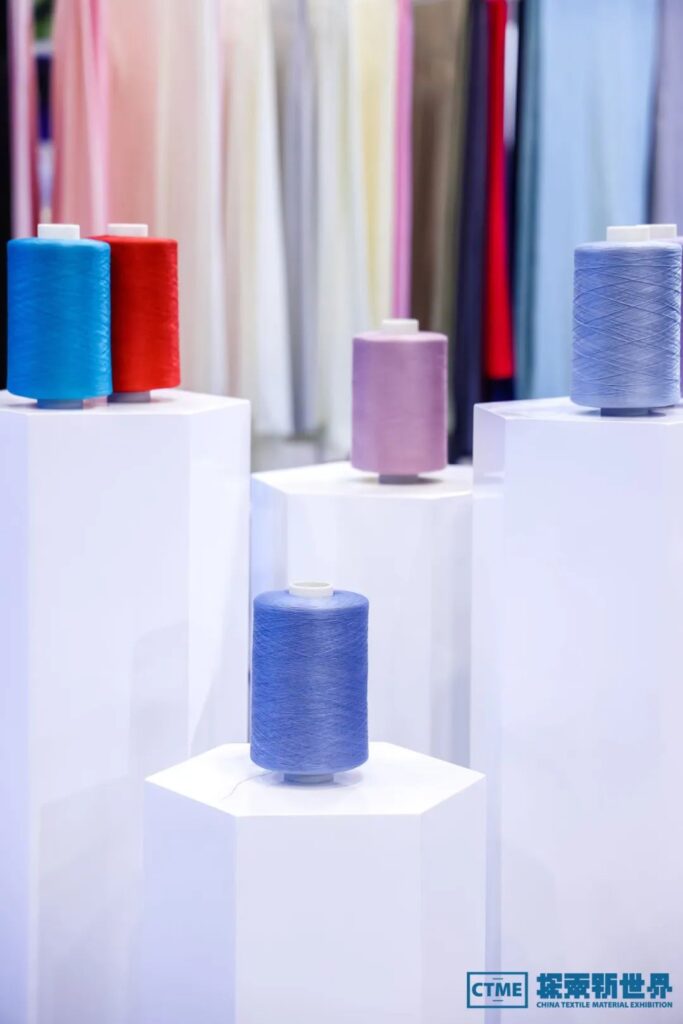 纺织产业基础板块,机械区的企业带来了最新的纺织机械和智能化生产线,以及基于大数据和人工智能的纺织管理系统,该板块还涵盖纺织材料的源头——纤维和纱线。多家参展企业展示了最新的天然纤维和再生纤维产品,包括有机棉、竹纤维、再生聚酯纤维等,这些新材料不仅环保可持续,而且在性能上也有了显著提升。