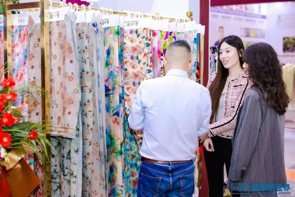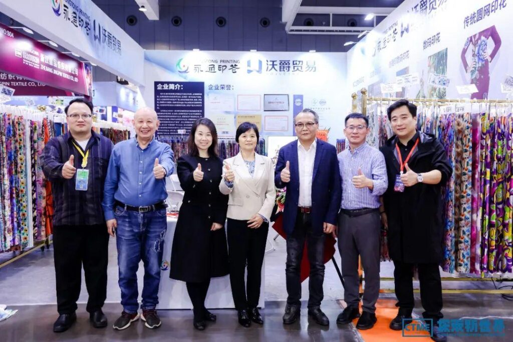 绍兴永通印花有限公司的展位也在该区块,“在很多国家,人造棉印花布不仅用来做衣服、做台布、做墙布,还作为走亲访友的礼品。”绍兴永通印花有限公司总经理章建木说,“我们公司目前的印花机械日生产能力100多万米,80%外销至非洲、南美、巴西、伊拉克、伊朗等中东国家。公司成立23年来一直深耕生物质再生纤维(粘胶纤维)织物低碳化印花领域,在全国粘胶纤维面料印花生产企业中位居前三。公司目前也大力投入创新资金,改建原先的数码印花车间,发展新质生产力,把人造棉印花的产业链打通,真正做大做强人造棉印花,争取做人造棉印花全世界第一,为柯桥印染企业摸索出一条“专精特新”细分行业的路子来。”