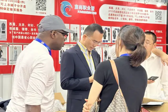 尽管秋意渐浓,现场却依旧热火朝天。现场众多知名品牌和企业汇聚,人潮涌动,高效对接,只为碰撞出职业装行业未来新的可能,探索新的机遇。现场不少企业也带着自家最具新意的产品亮相现场,简洁大方的展台,明亮的灯光让现场展品显得格外清爽整洁,一目了然。展商们满满诚意吸引无数观众驻足交谈,他们彼此分享着对职业装的见解和需求。来自五湖四海的人们因对职业装行业的热爱与追求而相聚于此。于忙碌的展会现场,偶然间的一个眼神交汇、一次热情交谈,也带来了如他乡故知般的温暖与惊喜。