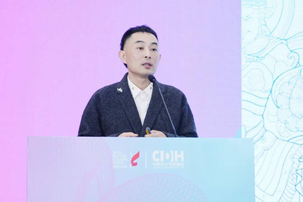 清华大学美术学院长聘副教授、染织服装艺术设计系主任李迎军在《文化赋能·相得益彰》的主题分享中提出,历史文化不仅是文明记忆,更是未来发展的力量源泉。对于中国企业而言,文化赋能不仅可以通过文化的视角提升品牌价值,更是激烈的全球化浪潮中真正的竞争力。他表示,文化的深远影响在当今时尚设计中随处可见,无论是布料的挑选,还是图案的创意设计。此外,不同文化之间交流互鉴、兼收并蓄才能推动构建人类命运共同体作出贡献。