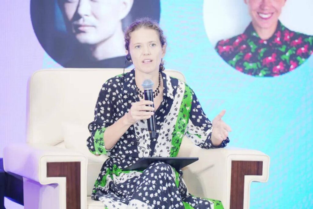 意大利米兰新美术学院教师基娅拉·特隆维尔表示,意大利与柯桥在时尚行业上共同追求更绿色、更可持续的未来。她倡导全球供应链合作,并提到欧洲即将出台的新法规,要求全链可追溯,以提高透明度,推动纺织材料从线性经济转向循环经济。
