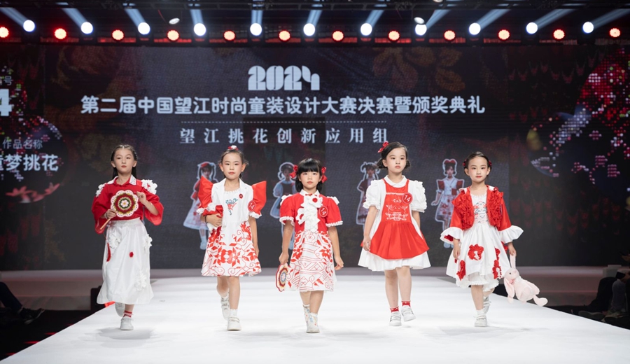 大赛决赛期间,现场举行了“望江童装”区域公共品牌LOGO发布仪式,“望江县童装元裳AI设计平台”揭牌仪式、“望江童装数字人”发布、2024第二届中国望江时尚童装设计大赛决赛秀和望江时尚童装秀。