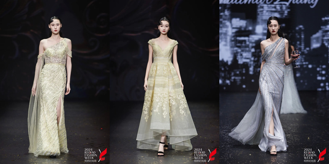 钻石和金线是缪斯·葵夏 & Shalimar Zhang 2025 新品发布会奢华晚礼服灵感的重要来源。绍兴葵夏纺织品有限公司以两者的结合,为礼服增添了无与伦比的高贵气质。在颜色选择上,本季产品采用了当下礼服行业的流行色,并保留了传统手工珠绣的制作工艺。