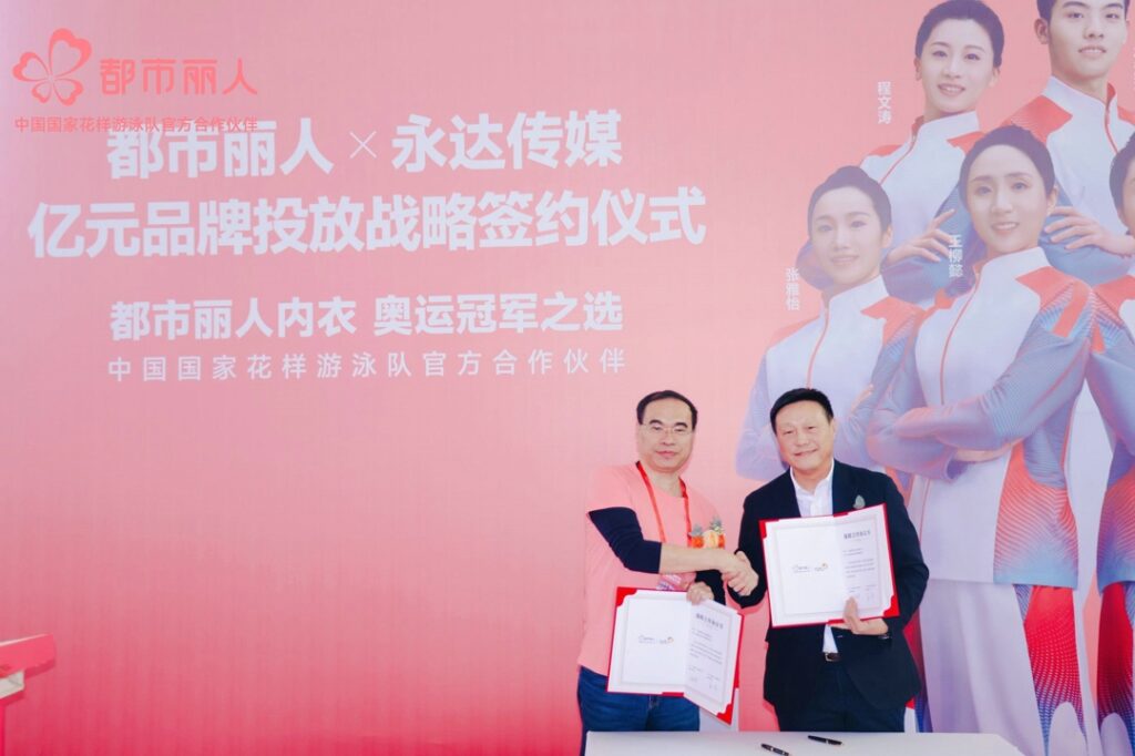 首发仪式上,都市丽人官方合作伙伴中国花游队,以视频的形式为此次合作“打call”,对都市丽人与永达传媒达成亿元投放战略合作表示祝贺。今年8月10日,中国花样游泳队在巴黎奥运会双人项目中再夺冠军,包揽了本届奥运会花样游泳项目的全部金牌,中国红闪耀奥运赛场。作为中国花游队的官方合作伙伴,都市丽人推出的“一路粉你到巴黎”主题营销活动,在巴黎掀起了一股“丽人粉”潮流,向全球消费者展现了都市丽人的品牌实力与营销创意。
