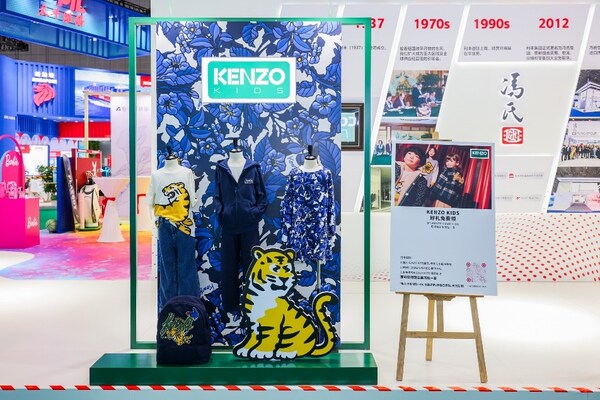 其中,KENZO品牌自1970年由日本设计师高田贤三在巴黎创立以来,一直以其独特的设计和对色彩的大胆运用而闻名。品牌的设计灵感来源于世界各地的不同文化,尤其是对丛林元素的偏爱,这在本次冯氏展区中KENZO KIDS的蓝色丛林系列中得到了体现。系列中的服装采用明亮的颜色,如蓝色,以及标志性的KENZO图案,如丛林印花,为孩子们的穿着带来一种轻松愉快的氛围。 这是一个结合了品牌传统和现代审美的系列,充满活力和想象力,它继承了KENZO品牌的核心设计理念,将趣致的印花图案、醒目的色调搭配以及舒适的休闲格调融入童装设计之中。这个系列的产品包括了多种款式,如卫衣、牛仔,背包等,旨在为孩子们提供既舒适又时尚的穿搭选择。