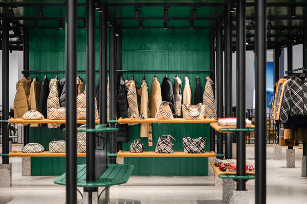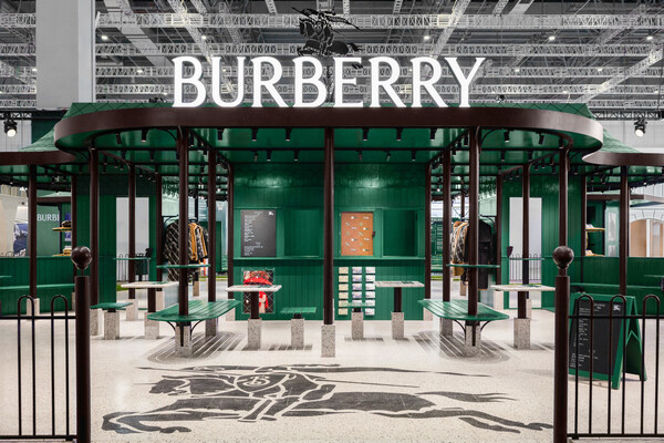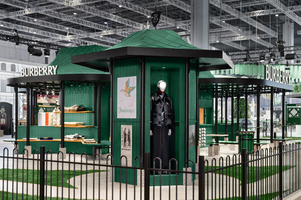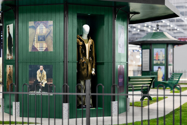 本次博柏利展馆的设计灵感融入传统英伦公园元素,生动重现伦敦公园中的大型凉亭设计。在晴雨不定的英伦天气中,凉亭可为来往行人提供温暖守护,与品牌设计理念不谋而合。此次博柏利展馆也以此为灵感,空间以品牌常春藤绿焕新诠释,礼赞博柏利悠久历史传承。亭子顶部的风向标以博柏利经典的马术骑士徽标铸就。展台内公园风格的长椅、棋盘桌、布告板等都极具英伦特色,将伦敦公园极具代表性的景致尽数呈现。观众可沉浸式体验漫步于伦敦公园的惬意感受。