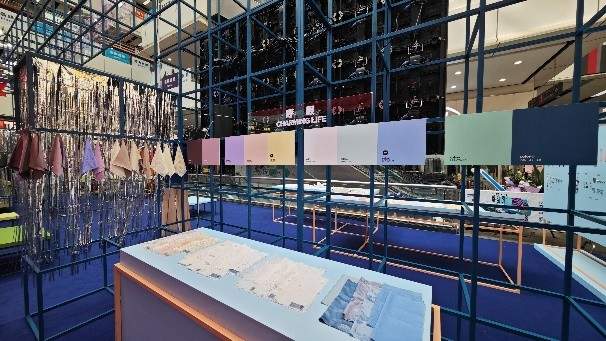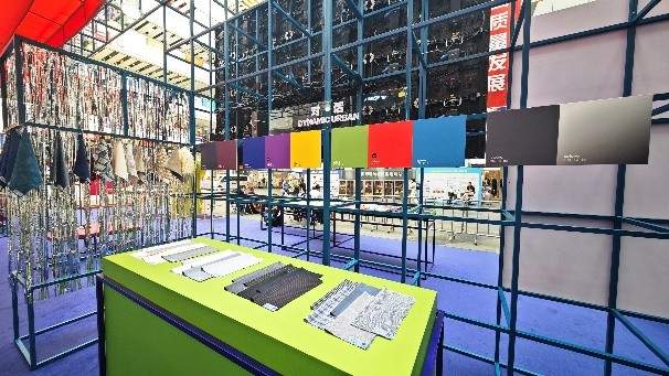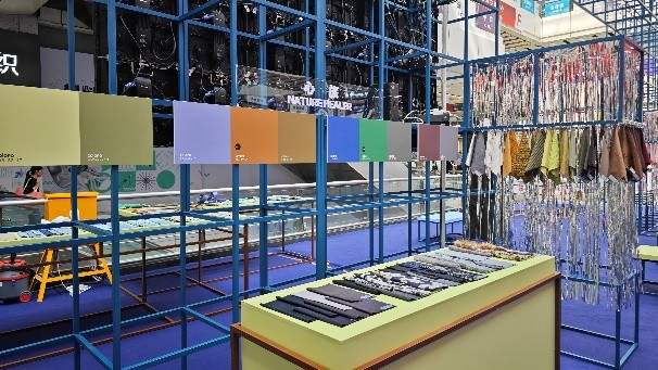 现场可见,发布区对1000余款面料和300余款辅料进行了系统化的梳理呈现,展现了未来季节的产品特色以及面辅料开发的重点方向。其中,“呼吸”主题的面料拥有新颖的趣味化视效以及细腻触感,中性化色彩的使用令其具有长期价值;“对话”主题注重材质的创意表现以及生动鲜艳的色彩应用,满足城市生活穿搭需求;“心旅”主题中面料融合日常舒适与户外性能,具有多场景适用性;“绽放”主题则关注东方文化元素的运用,打造出新古韵风格。
