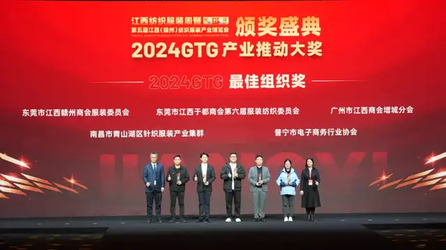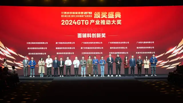 11月19日,2024江西纺织服装周暨第五届中国(赣州)纺织服装产业博览会颁奖盛典在中国·赣州(于都)国际会展中心秀场举行。江西省工信厅二级巡视员杨金娥,赣州市人民政府副市长连天浪,省工信厅纺织工业处处长潜九庆,赣州市人民政府副秘书长钟福林,赣州市市场监管局局长、市纺织服装产业链推进协调小组副组长兼办公室主任黄蕙,于都县委副书记、于都县长李松柏,李高华、王峰、罗高波、赖晓强等在家的县四套班子领导及各行业代表出席典礼。杨金娥、连天浪分别致辞,李松柏作了答谢词。