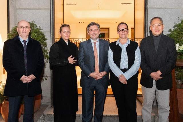 图说:(从左至右)法国驻上海总领事馆经济参赞穆西石先生,智奥会展大中华区总裁Inès Ginon女士,法国驻上海总领事M. Joan Valadou 王度先生、Première Vision董事会主席Florence Rousson女士、之禾卡纷集团创始人叶寿增先生