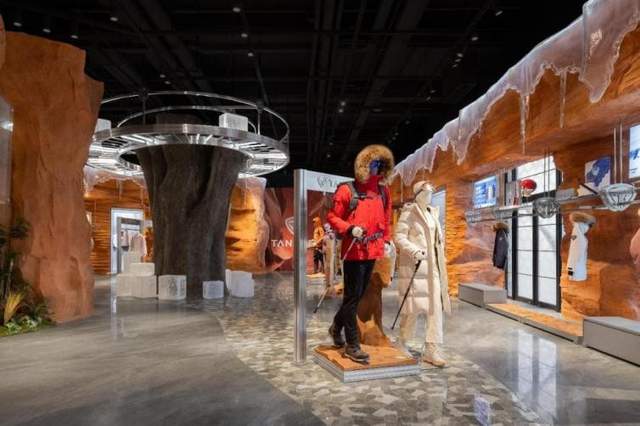 展厅现场,在红岩丹峰、冰川雪地、现代都市的移步换景之间,坦博尔多场景专业户外服饰“全明星阵容”高能上阵,一次满足高性能户外、极地探索、轻量户外、滑雪、城市运动、时尚运动、商务等多元户外场景的不同时尚需求。