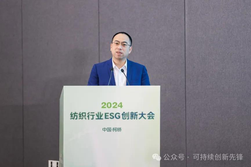 绍兴市柯桥区副区长章松发表致辞,他表示,纺织行业不仅承载悠久的历史文化传承,更肩负着推动绿色可持续发展的重要使命。近年来,绍兴围绕世界级现代纺织产业集群目标,积极践行高新化、绿色化、智能化理念,构建了结构完整、配套完善的现代纺织产业体系。柯桥拥有ESG创新与应用的关键支撑,构建了多渠道、多层次、多元化的技术创新体系,引建一系列高端创新平台,汇聚一大批纺织领域高层次人才,营造良好的创新生态;拥有ESG创新与应用的广阔空间,化纤、织造、印染、服装、家纺、纺机装备众多领域齐头并进,绿色化纤、绿色印染、绿色织造蓬勃发展,印染产能多年位居全国第一;拥有ESG创新与应用的政策保障,先行发布《产品碳足迹评价技术规范化纤面料》等地方标准,探索构建“碳足迹标识”认证制度体系,加快提升知识产权保护能力。