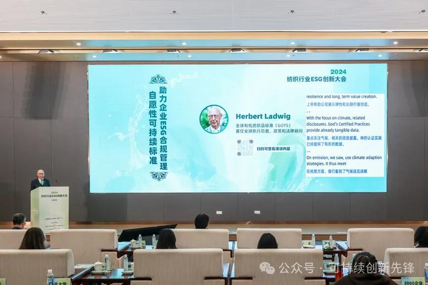 全球有机纺织品标准(GOTS)首任全球执行总裁、政策和法律顾问Herbert Ladwig介绍了“自愿性可持续标准助力企业ESG合规管理”。GOTS在推动公司遵守ESG原则方面发挥着关键作用,通过要求企业使用有机纤维、避免有害化学物质和GMOs,以及高效利用资源,来减少环境影响。同时,它强调公平劳动实践、禁止童工和强迫劳动,从而确保社会责任。此外,GOTS还注重公司治理和透明度,要求全程可追溯性,并通过第三方审核验证合规性,这些措施不仅符合多个非财务信息披露框架和法律要求,还为企业带来了信誉、风险管理、透明度、全球目标一致性以及投资者信心等多重战略优势。明年,GOTS将推出第二个标准,包括GOTS的所有要求、流程和优势,进一步推动行业的可持续发展。