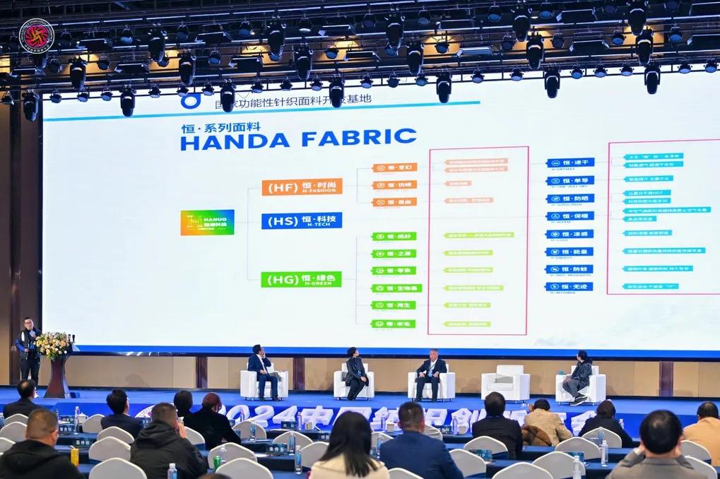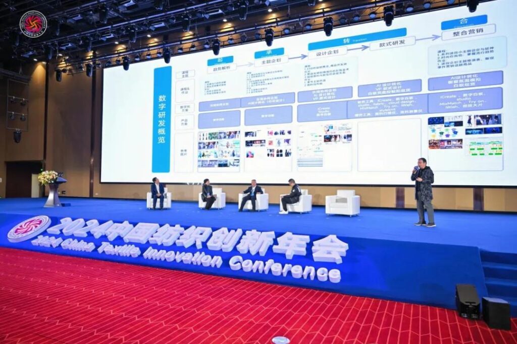 在对话环节,纺织产品开发中心副主任陈宝建围绕“打造细分赛道新优势,聚力产品开发新体系”的议题,从战略选择、管理体系、应用场景、数据价值、技术优势等维度,与来自纤维、面料、服装以及数字科技领域的企业嘉宾展开了深入交流。