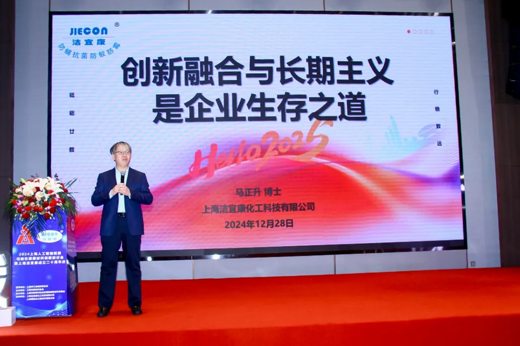 上海洁宜康化工科技有限公司总经理马正升博士作了“创新融合与长期主义是企业生存之道”的演讲,结合公司成立二十周年庆典活动,回顾了洁宜康公司成立二十年以来的发展历程,并就创新融合与坚持长期主义向与会者进行了交流,与参会者进行了良好的互动,效果良好。