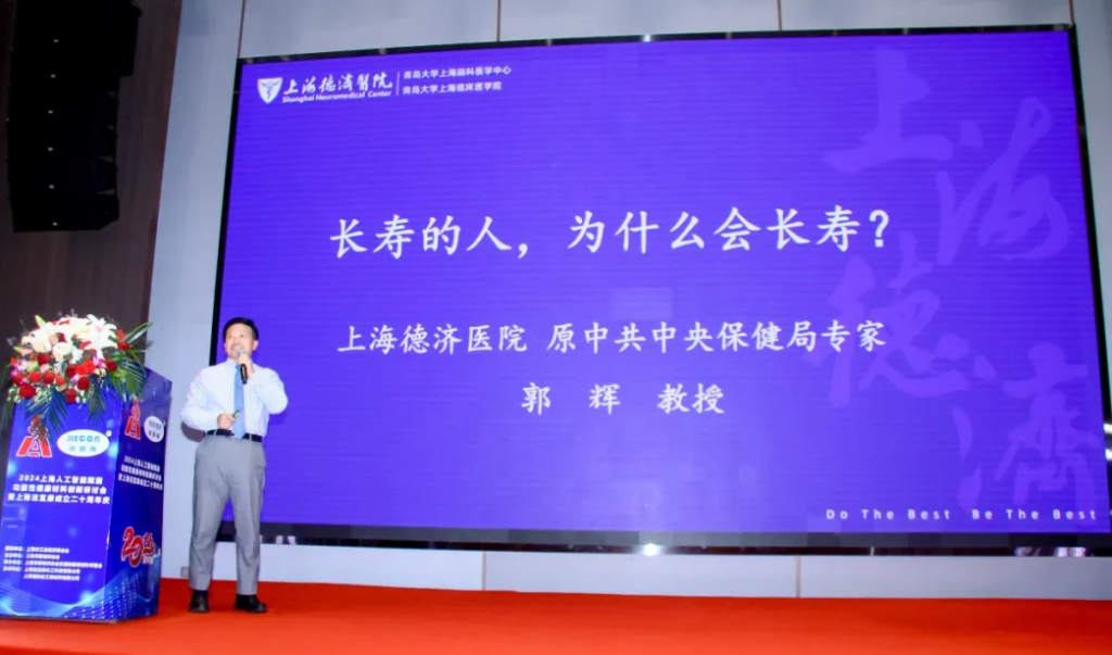 上海德济医院院长郭辉教授作了“长寿的人,为什么会长寿?”的报告,从脑健康的几个前沿科学问题:脑健康、人工智能脑机接口与大脑移植和神经干细胞方面说起,分享了三个健康法则:精神愉悦和宁静是最高的免疫力、心能随时随地静下来是脑健康的核心能力、摄入和代谢平衡,引起了与会者强烈的兴趣。