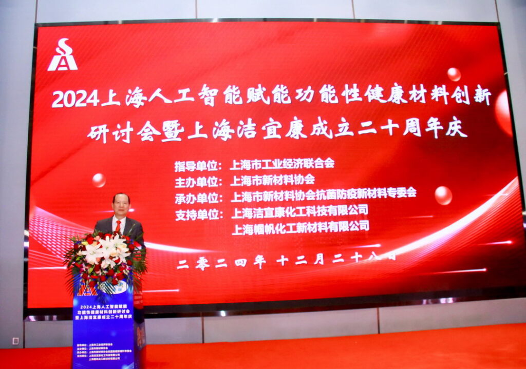 2024年12月28日下午, 由上海市工业经济联合会指导、上海市新材料协会主办、上海市新材料协会抗菌防疫新材料专委会承办、上海洁宜康化工科技有限公司与上海帼帆化工新材料有限公司协办的“2024上海人工智能赋能功能性健康材料创新研讨会”在上海建滔诺富特酒店顺利盛大举办!