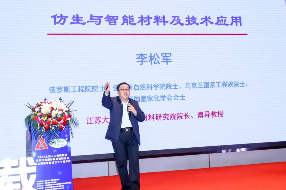 江苏大学高分子材料研究院院长/博导李松军教授作了“仿生与智能材料及技术应用”主题报告,从人类文明进化的标志、科学的起源、宏观功能仿生与分子水平仿生与智能几个方面,让大家对“仿生”与“材料”建立了某种联系,为大家今后的产品开发提供了底层开发思维空间。让大家认识到仿生与智能高分子材料可赋予合成材料(部分)生物功能,实现可控制、可调节的特点,实现自我反馈与控制能力。