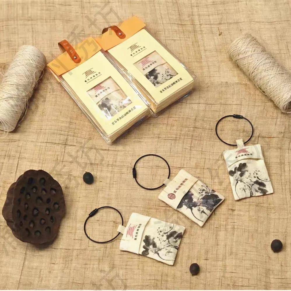 夏布墨染醒神袪湿香包, 香包的香料是经过特殊的中医药炮制技艺制作而成,内含丁香、薄荷、白芷、艾叶、橘皮等十余种中草药。 香包上是 一幅 墨染的并蒂莲,在新余的很多乡镇都有连片的荷塘,荷花竞相绽放的时候也能够为我们每一个夏季增添许多诗意,而并蒂莲它是荷花的一种,也被誉为合欢联和瑞莲,寓意着爱情美满 、 幸福吉祥。