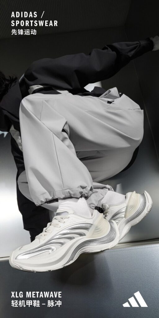 XLG METAWAVE「轻机甲鞋-脉冲」作为对 Y3K 未来趋势的大胆展望,在设计中融入对未来多元维度的畅想 ,呈现出超越时间与空间的独特设计语言;宛如元宇宙中涌动的量子波状能量,渗透至现实空间,打破过去与未来的时间边界,突破现实与虚拟的场域限制。它不仅带来一场风格的变革,更展现出 FUTURE OF STYLE 阿迪达斯「先锋运动」在探索未知领域、追求创新融合方面的积极态度。