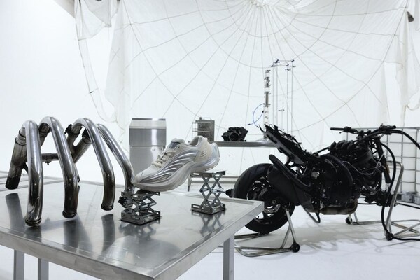 全新轻机甲鞋设计灵感通过与总部位于柏林的全球创意机构与设计工作室ABOUTKOKOMO的合作得以深化。”未来实验室”的场景由机械涡轮与实验室装置交织构成,悬挂的降落伞融合金属操作台、与流动的液态金属,构建出一个超现实空间。”未来实验室”承载着Y3K风格的创意表达,彰显FUTURE OF STYLE阿迪达斯「先锋运动」对于未来先锋设计的深度探索和突破边界的精神。